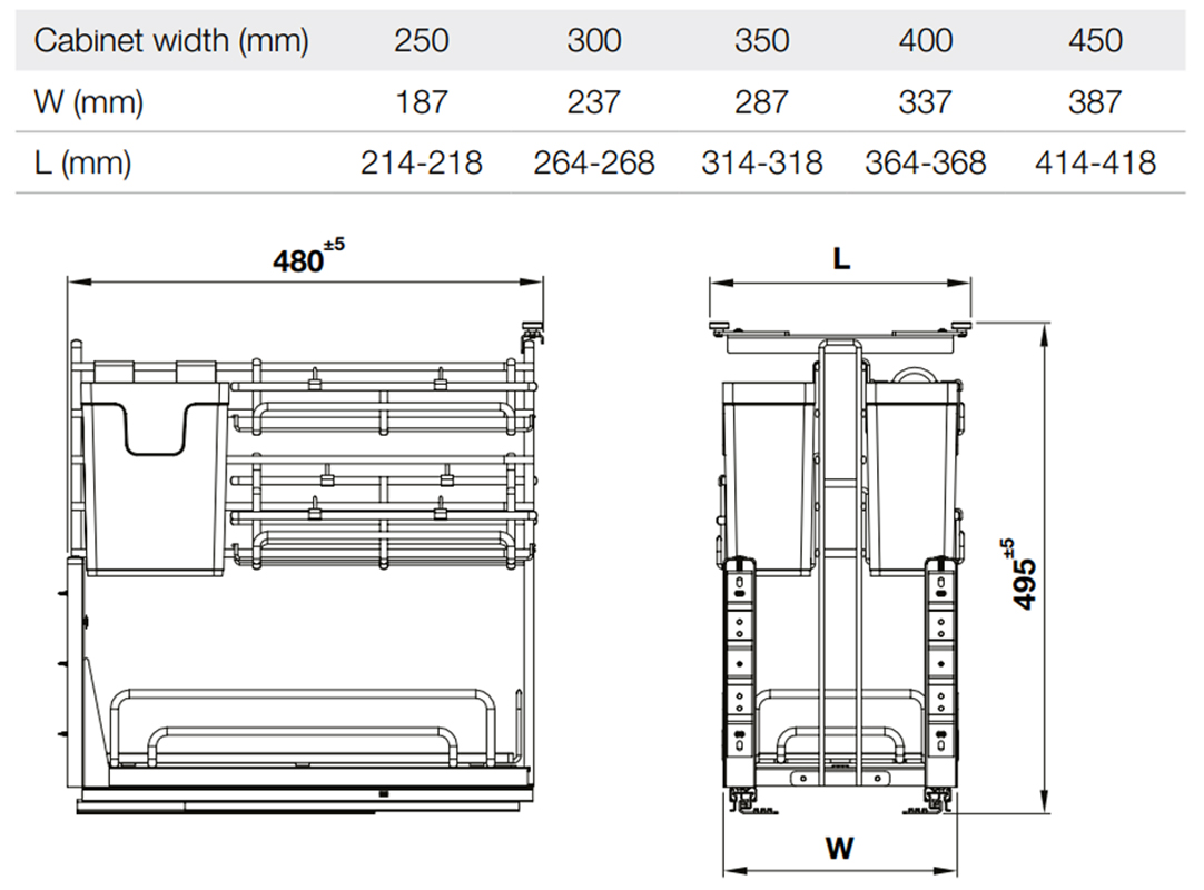 Rổ gia vị dao thớt đa năng Inox 304 nan Ovan 450mm Hafele Omero Multi 547.11.006