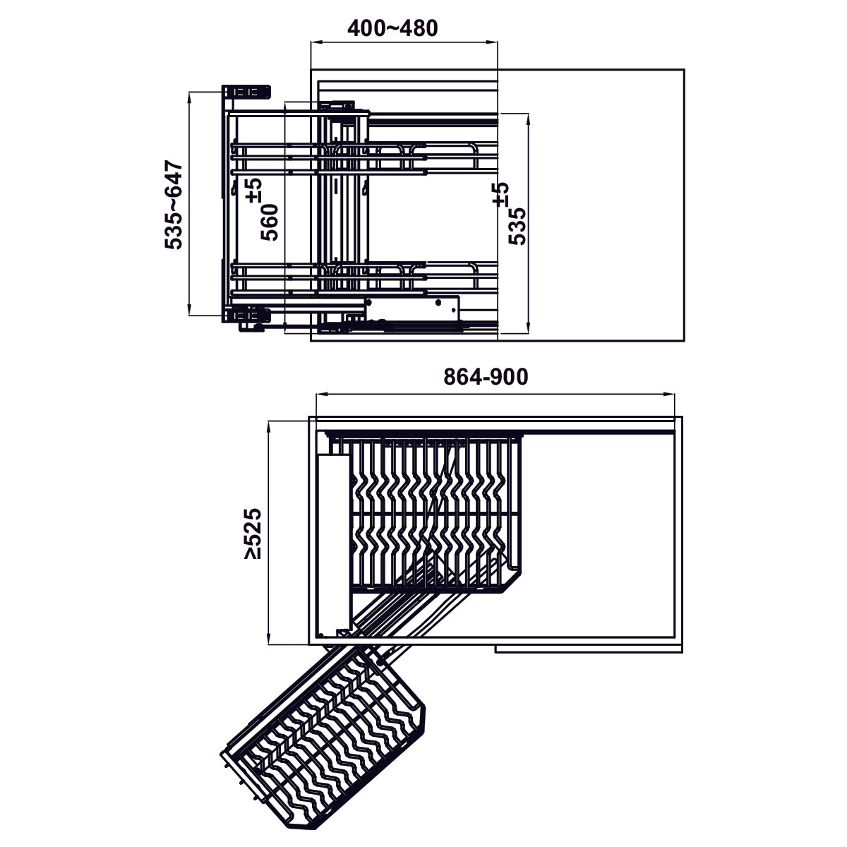 Rổ góc liên hoàn mở phải Inox 304 nan Ovan Hafele Olla 548.21.022