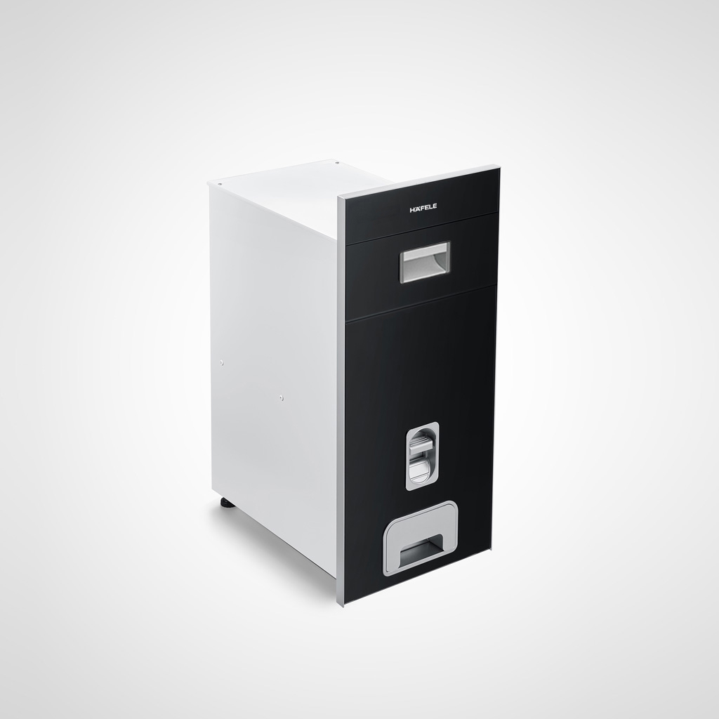 Thùng gạo mặt gương đen 25kg nút nhấn 300mm Hafele 549.32.991