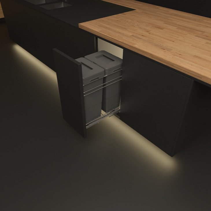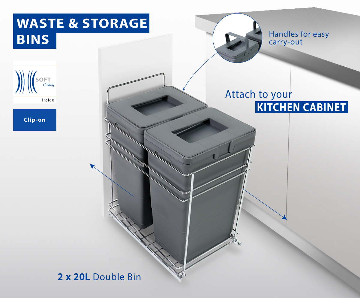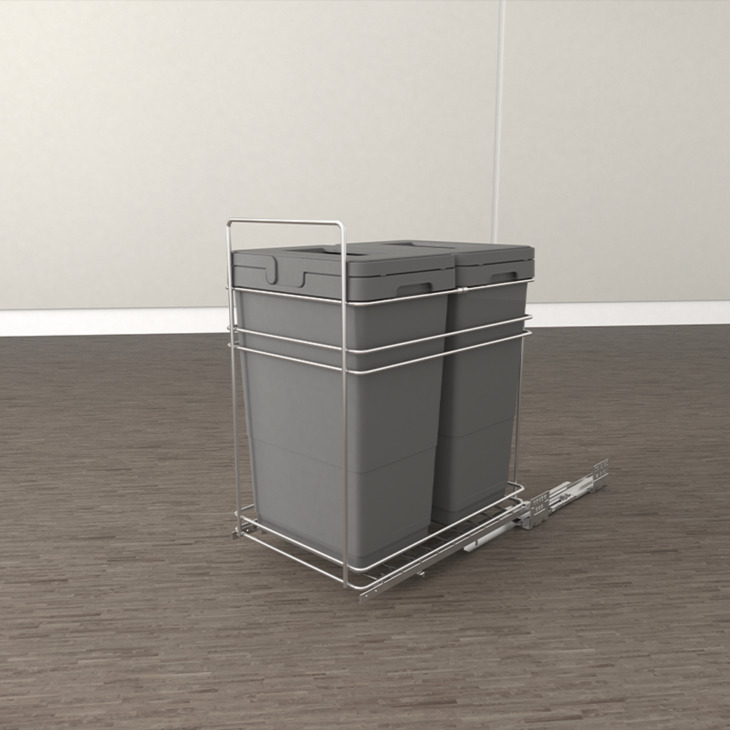 Thùng rác âm tủ 2 ngăn 2*20L cánh kéo/mở màu xám 400mm Hafele Viola 503.48.505