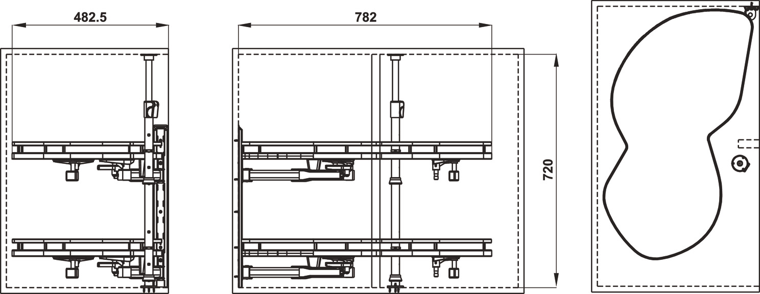 Kệ góc liên hoàn hình lá thép phủ Nano mở phải Hafele Olla Move 541.01.804