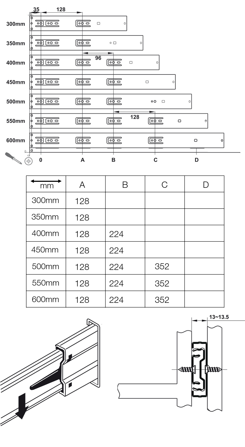 Ray bi 3 tầng có giảm chấn thép sơn tĩnh điện màu đen 350mm Hafele 494.02.072