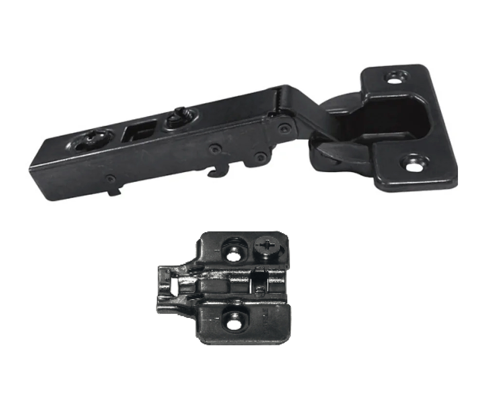 Bản lề giảm chấn thép mạ Niken màu đen lắp trùm ngoài Metalla SM 110º kèm đế Hafele 315.20.750 + 315.98.656