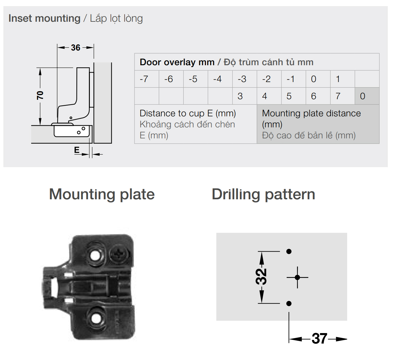 Bản lề không giảm chấn INOX SUS304 lắp trùm ngoài Metalla SM 110º kèm đế Hafele 315.06.350 + 315.98.570