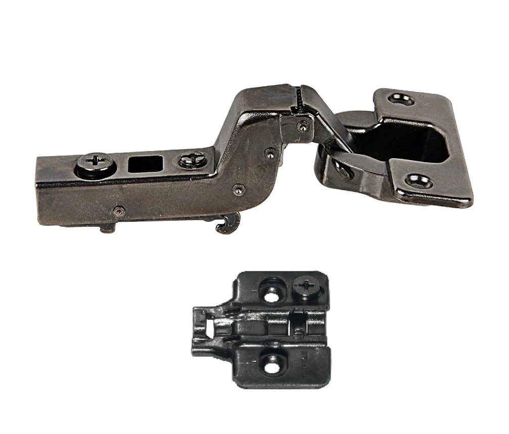Bản lề giảm chấn thép mạ Niken màu đen lắp lọt lòng Metalla SM 110º kèm đế Hafele 315.20.752 + 315.98.656