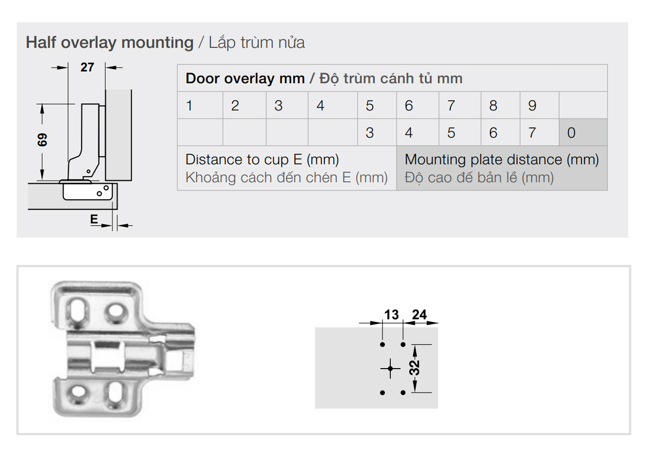 Bản lề giảm chấn thép mạ Niken lắp trùm nửa Metalla SM 110º kèm đế Hafele 315.11.751 + 315.98.550