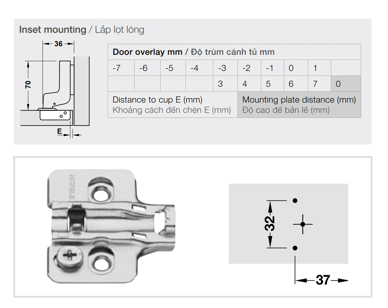 Bản lề không giảm chấn thép mạ Niken lắp lọt lòng Metalla SM 110º kèm đế Hafele 315.18.302 + 315.98.670