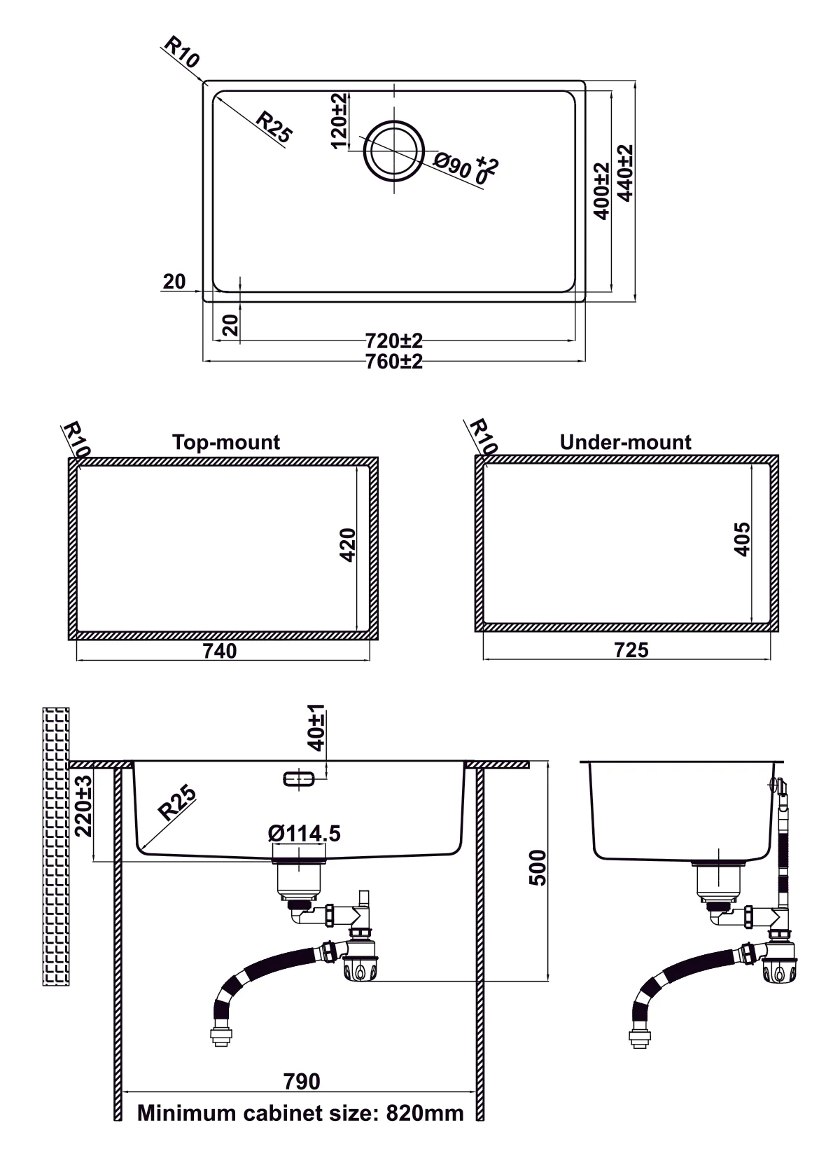 Chậu rửa 1 hố Inox 304 Hafele Satin R25 HS24-SSN1S-760 | 567.24.407