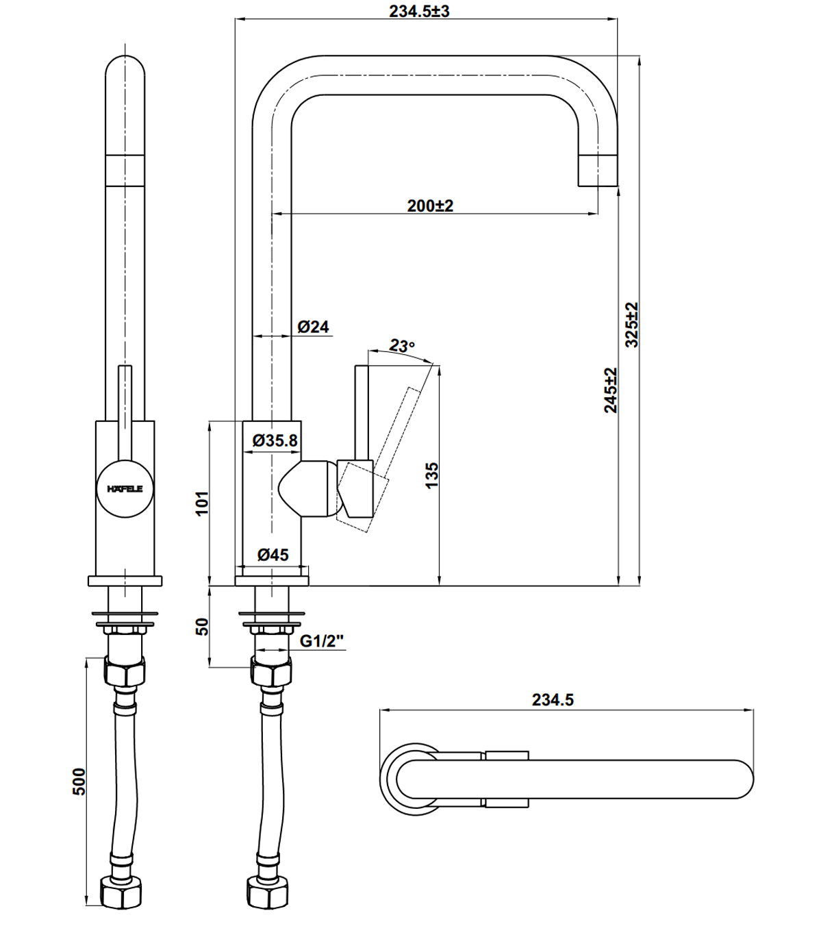 Vòi rửa 1 đường nước lạnh đồng mạ Chrome Hafele HT21-CC1F245U | 577.55.260