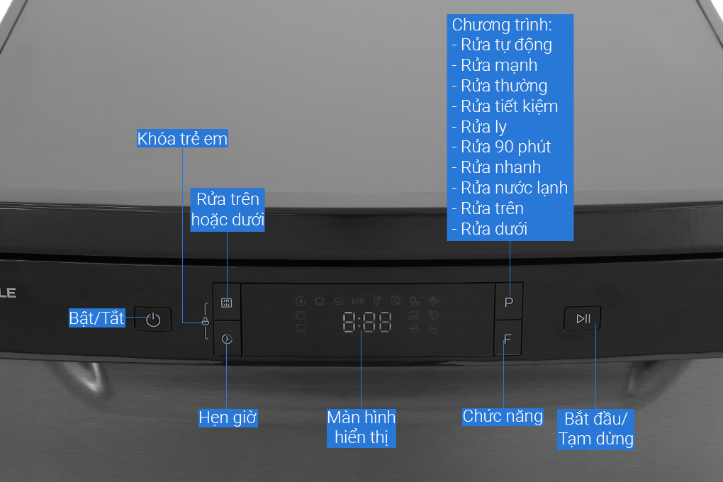 Công suất tiêu thụ điện năng cho máy rửa bát