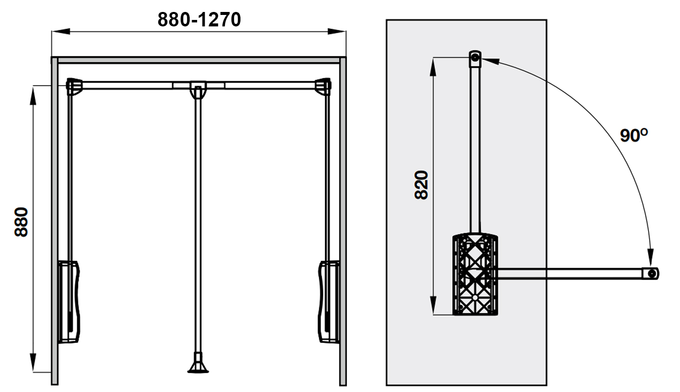 Tay nâng móc áo màu hạt dẻ rộng 880-1270 mm Hafele 805.11.154