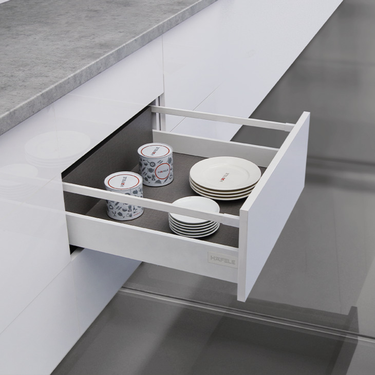 Ray hộp thành mỏng ALTO-S màu trắng mờ chiều cao 80mm với thanh vuông Hafele 552.55.718
