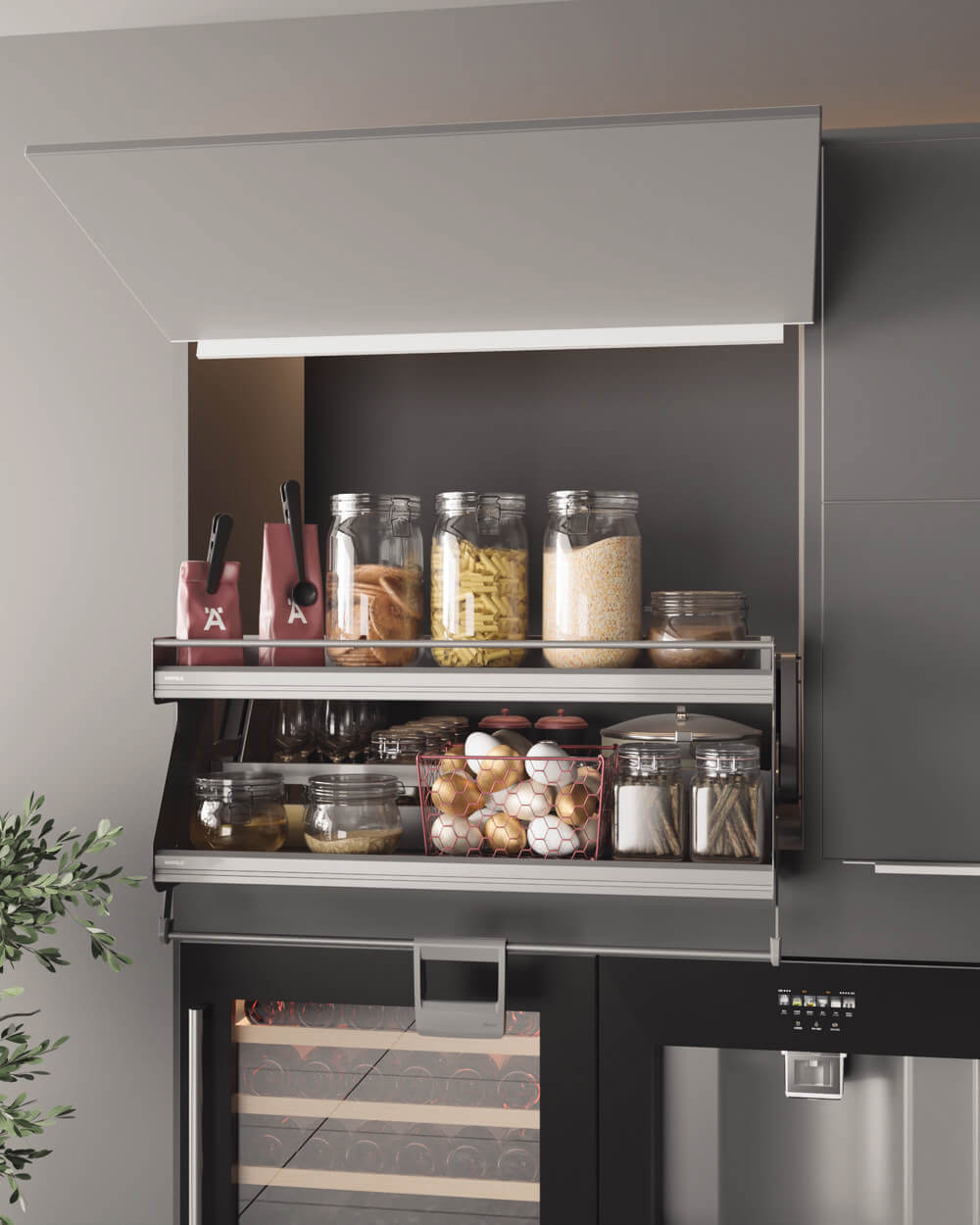 Rổ nâng hạ 2 tầng màu than chì 900mm Utensio Plus H2 Hafele 504.68.379