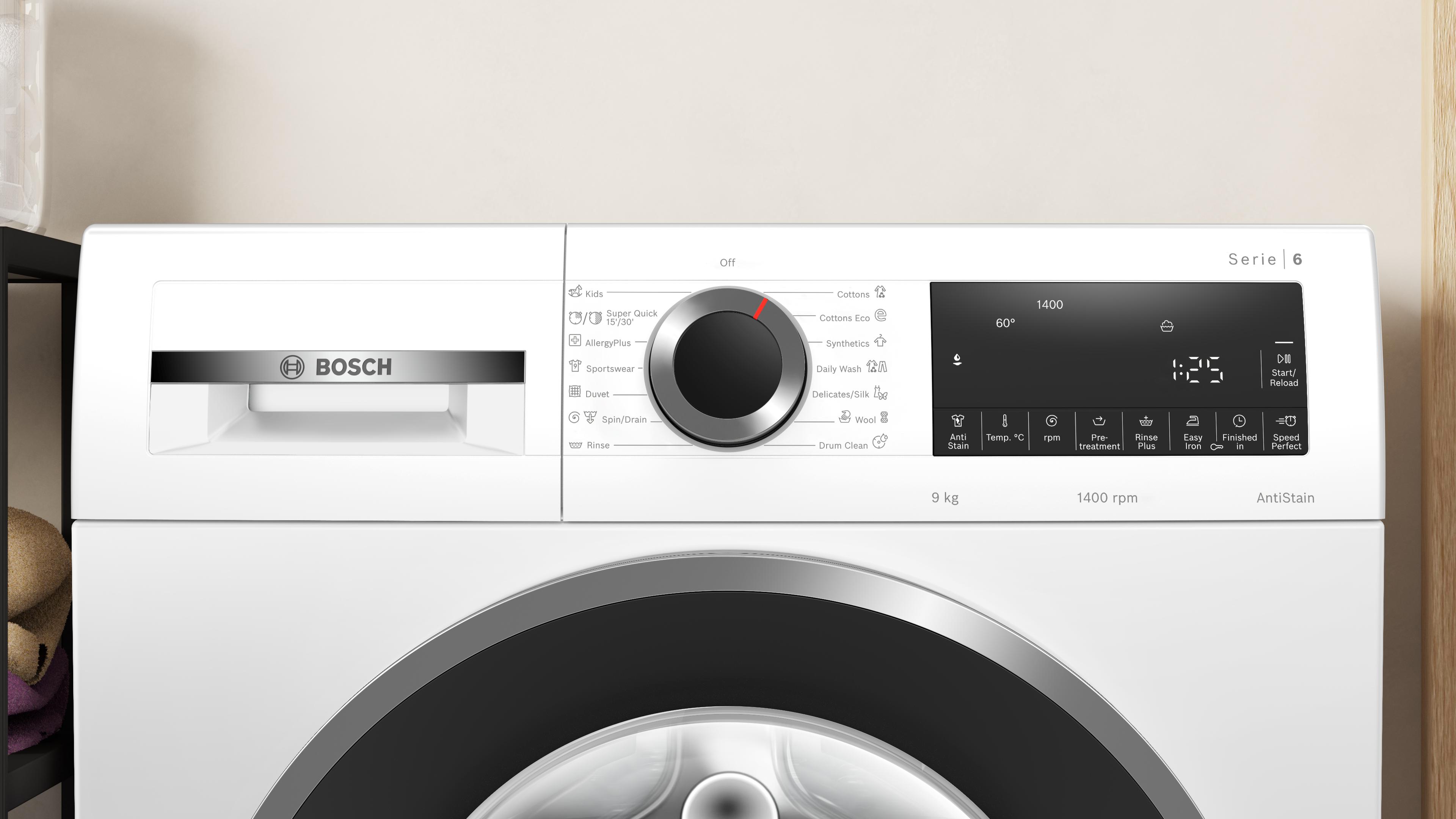 Máy giặt độc lập màu trắng 9kg Serie 6 Bosch WGG24400SG
