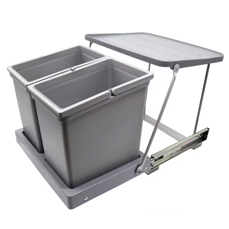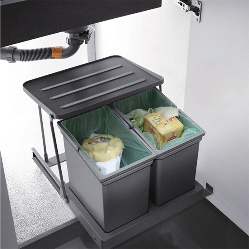 Thùng rác âm tủ 2 ngăn 14L cánh mở 400mm Eurogold E008 | ERT108