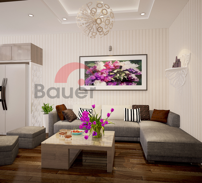 Để phân cách giữa phòng khách và phòng bếp, KTS đã sử dụng họa tiết CNC sơn trắng vừa là điểm nhấn vừa thể hiện khéo léo ý tưởng mới lạ, độc đáo.