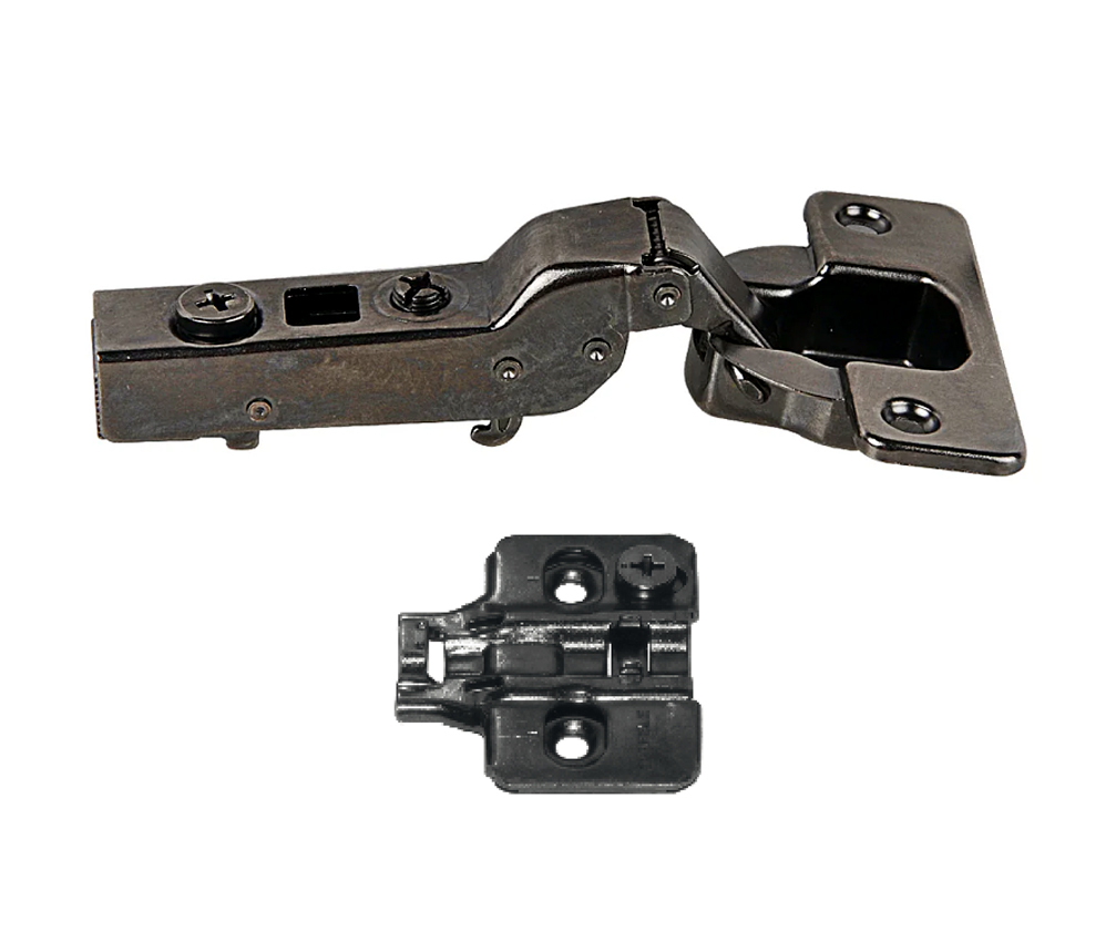 Bản lề giảm chấn thép mạ Niken màu đen lắp trùm nửa Metalla SM 110º kèm đế Hafele 315.20.751 + 315.98.656