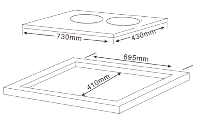 - Kích thước khoét lỗ đá: 410mm x 695mm