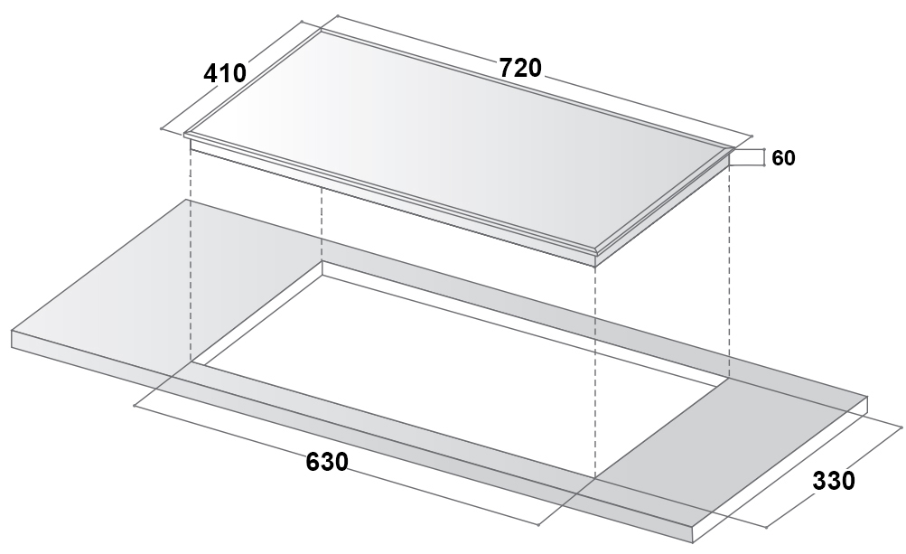 - Kích thước khoét đá: 630 x 330 mm