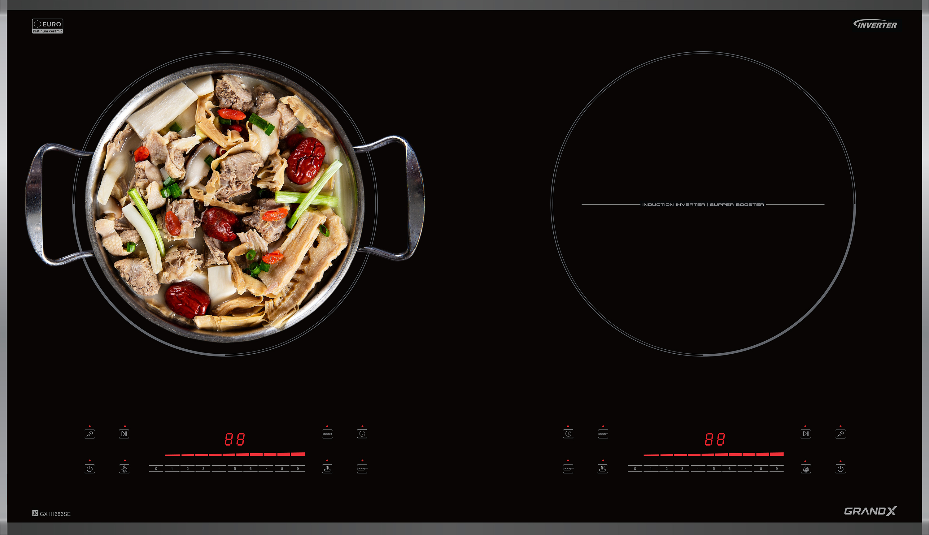 Bếp từ GrandX GX IH686SE | Series 6 | 2 vùng nấu | 5000W | nhập khẩu nguyên chiếc từ Malaysia | thiết kế sang trọng | hệ điều khiển cảm ứng Slider Control độc lập | an toàn, bền bỉ và tiết kiệm điện năng | cùng hsn.vn tìm hiểu kỹ hơn về sản phẩm này.