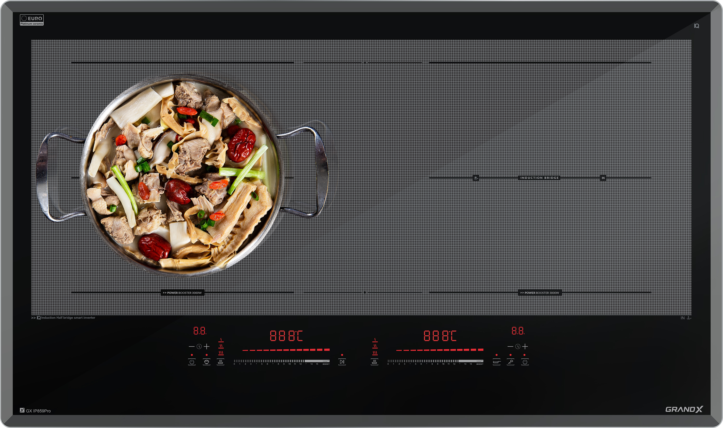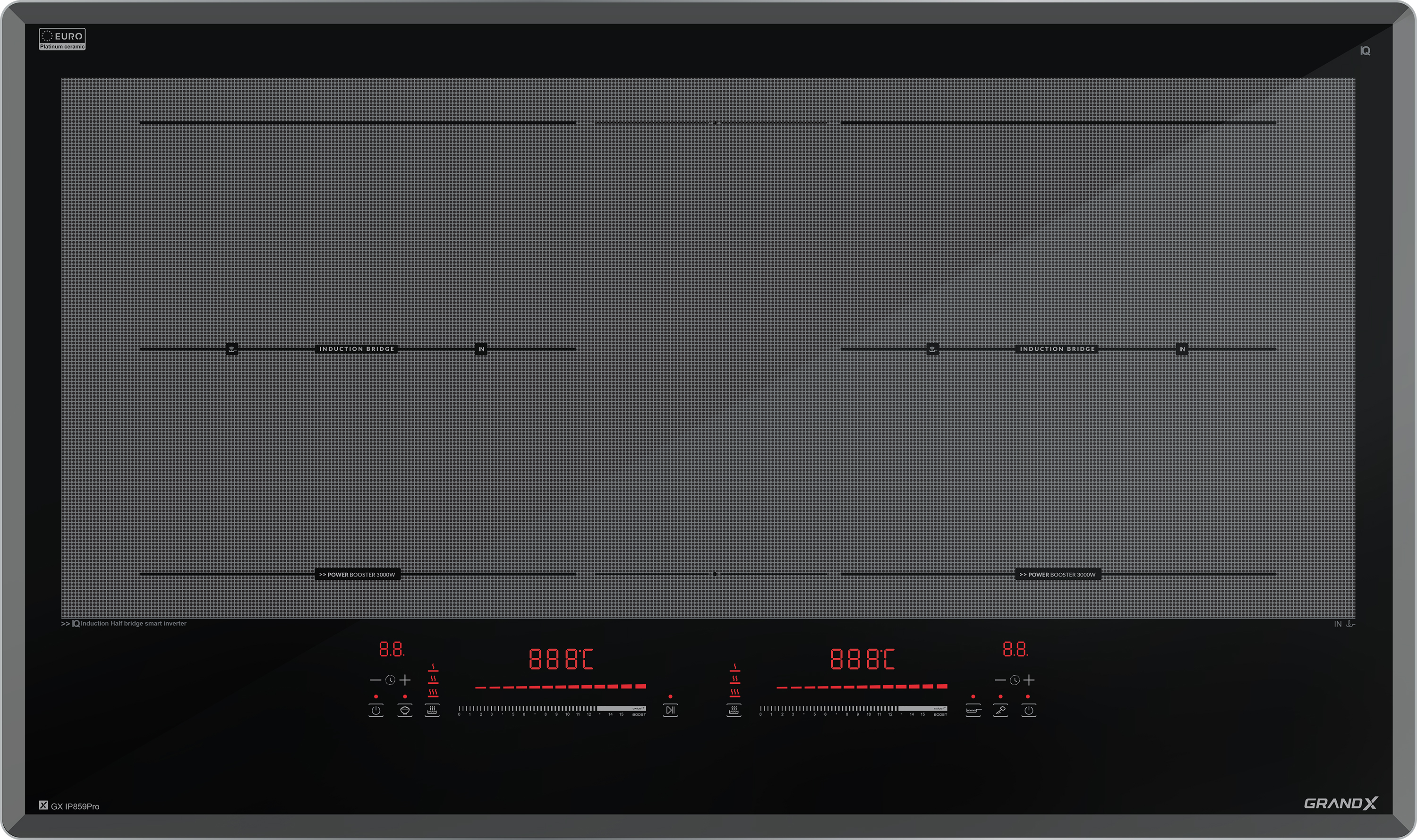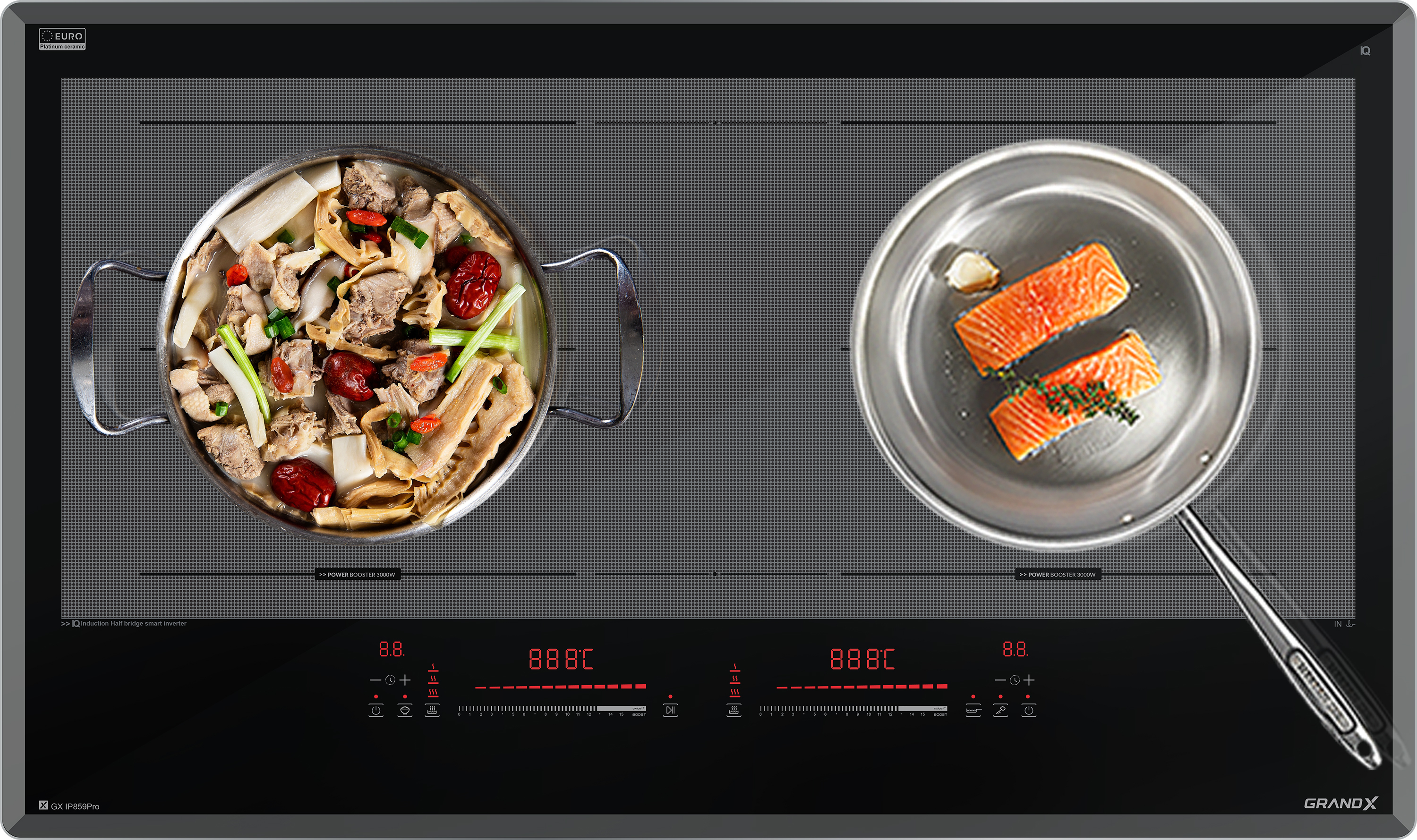 Với bếp từ GrandX GX IP859Pro được tích hợp chức năng tự nhận diện vùng nấu Automatically Find Pot, khi ta đặt nồi lên 1 trong 2 vùng nấu sau đó ấn nút khởi động bếp sau thời gian 1-2 giây bếp sẽ tự động tìm vùng nấu đã có nồi, ta chỉ việc điều chỉnh mức công suất to nhỏ theo ý muốn mà không phải thao tác chọn vùng nấu như bếp thông thường.