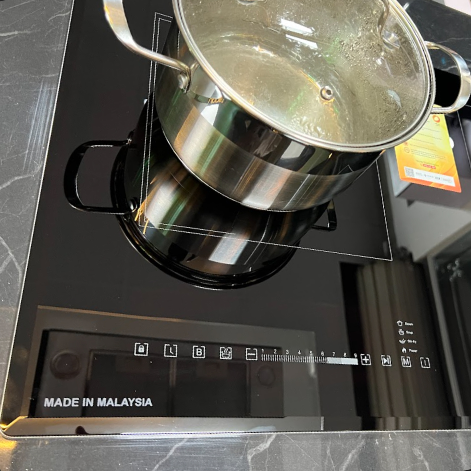 - Tự động phát hiện vùng nấu và vùng nấu chỉ nóng khi có nồi