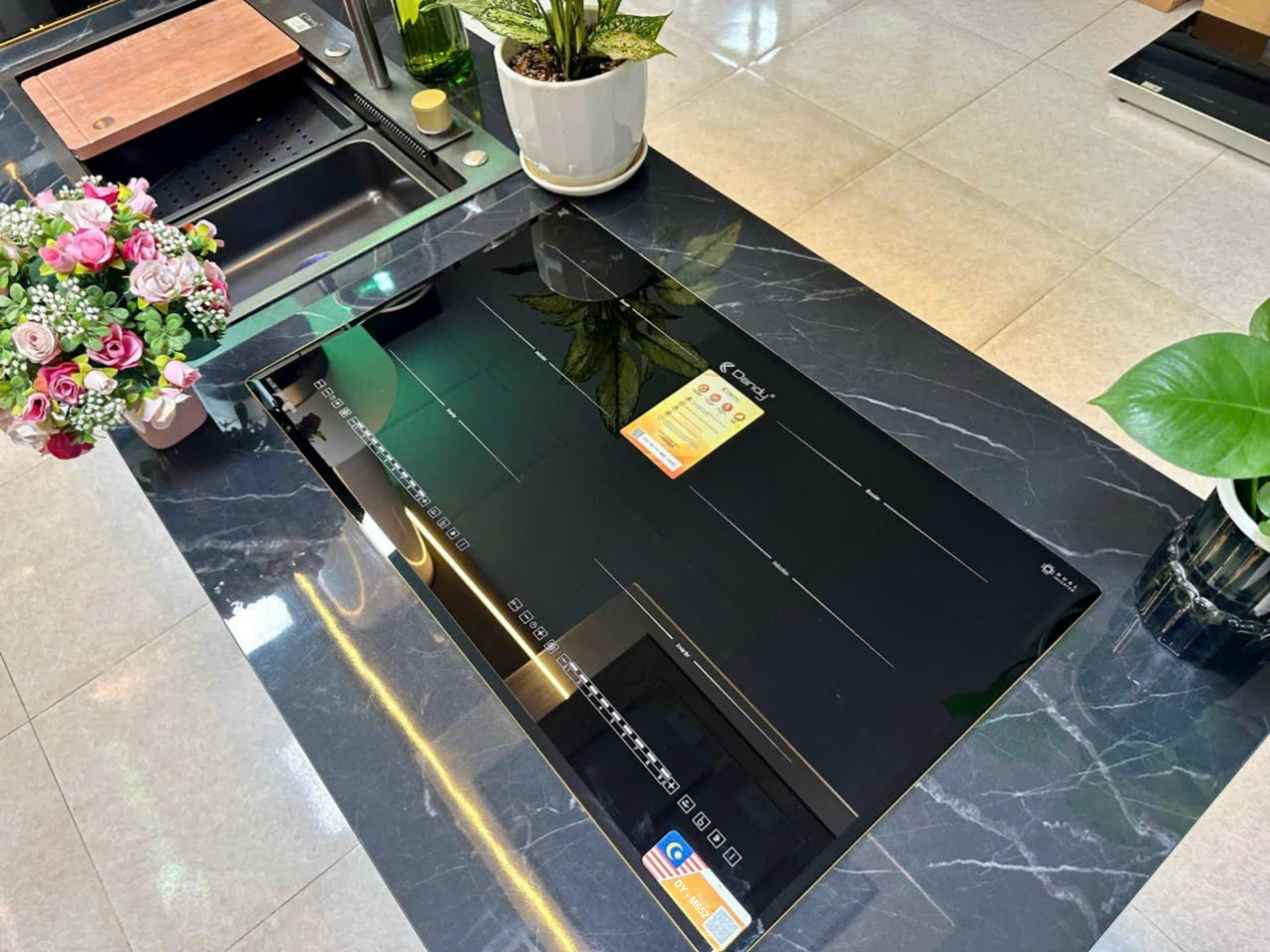 - Điều khiển cảm ứng trượt Slider Control 9 mức công suất, độc lập cho từng vùng nấu