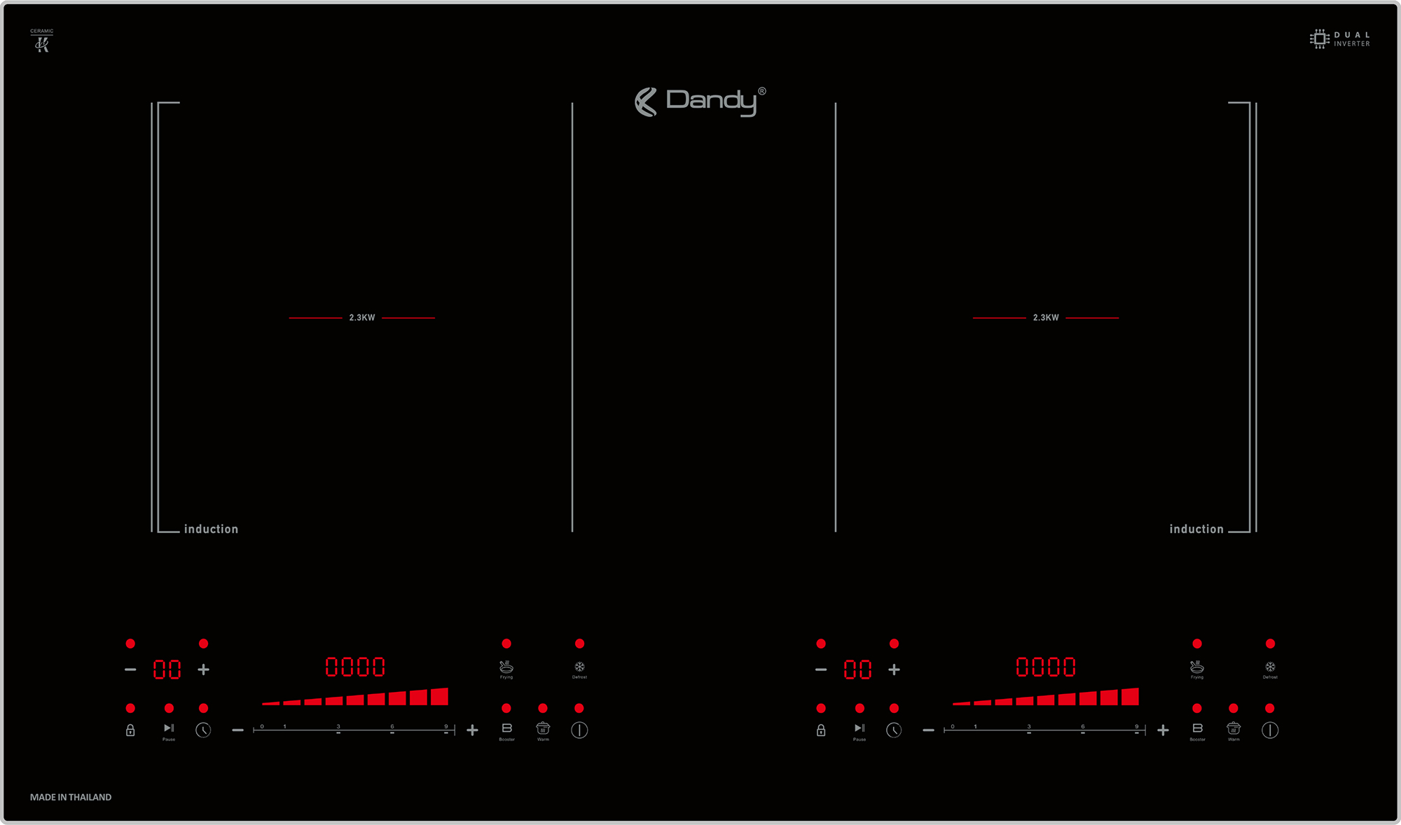 Bếp từ Dandy DY-TH599 được tích hợp chức năng tự nhận diện vùng nấu, khi ta đặt nồi lên 1 trong 2 vùng nấu sau đó ấn nút khởi động bếp sau thời gian 1-2 giây bếp sẽ tự động tìm vùng nấu đã có nồi, ta chỉ việc điều chỉnh mức công suất to nhỏ theo ý muốn mà không phải thao tác chọn vùng nấu như bếp thông thường. Công nghệ Inverter được áp dụng trên bếp từ Dandy DY-TH599 có khả năng phản ứng thay đổi công suất theo điều khiển ngay tức thì, khi người dùng điều chỉnh tăng giảm nhiệt độ đun nấu, bếp điều chỉnh thay đổi tức thì về mức nhiệt độ mong muốn.