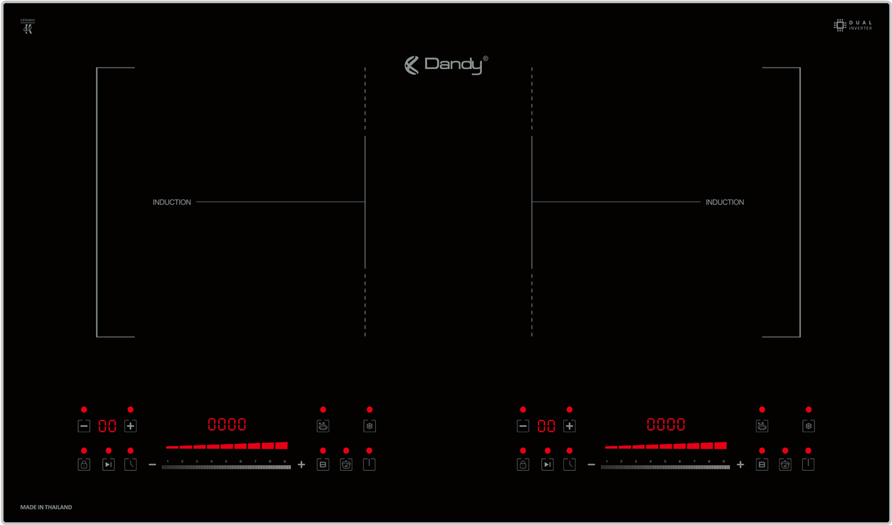 Bếp từ Dandy DY-TM399 được tích hợp chức năng tự nhận diện vùng nấu, khi ta đặt nồi lên 1 trong 2 vùng nấu sau đó ấn nút khởi động bếp sau thời gian 1-2 giây bếp sẽ tự động tìm vùng nấu đã có nồi, ta chỉ việc điều chỉnh mức công suất to nhỏ theo ý muốn mà không phải thao tác chọn vùng nấu như bếp thông thường. Công nghệ Inverter được áp dụng trên bếp từ Dandy DY-TM399 có khả năng phản ứng thay đổi công suất theo điều khiển ngay tức thì, khi người dùng điều chỉnh tăng giảm nhiệt độ đun nấu, bếp điều chỉnh thay đổi tức thì về mức nhiệt độ mong muốn.