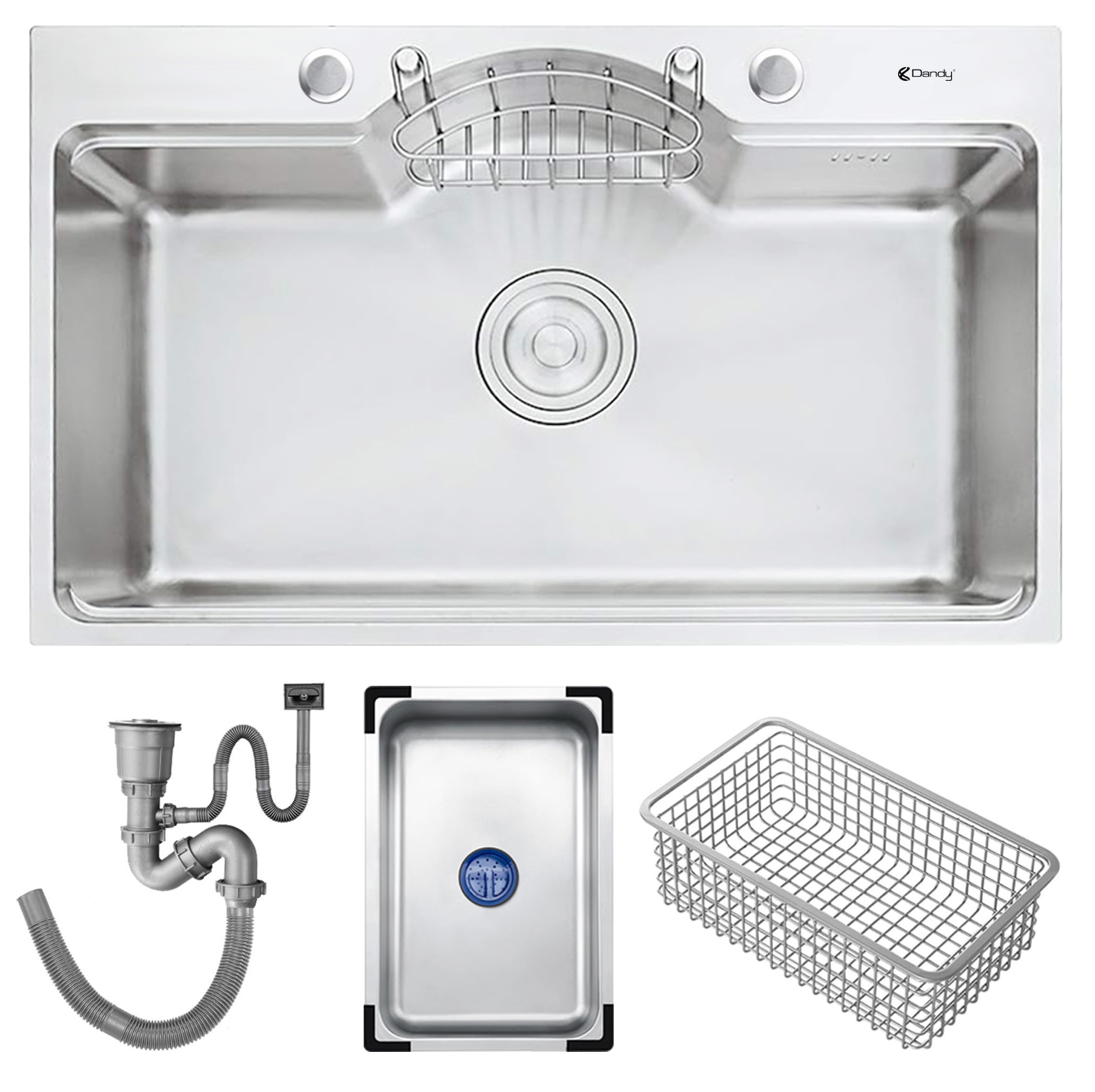 Chậu rửa Dandy DY-7848 thuộc dòng sản phẩm Overmount. Đây là sản phẩm phù hợp nhất cho tủ bếp tại bàn đảo, quầy bar hoặc gian bếp có diện tích bàn bếp hẹp ngang. Chậu đơn, rộng ngang, lòng chậu sâu giúp mở rộng diện tích thao tác trong hố chậu một cách tối đa. Model DY-7848 được tối ưu công năng nhờ thiết kế hạ bậc, Chậu rửa nhỏ đi kèm giúp tích hợp công năng cho 1 bồn rửa bát đơn hố.