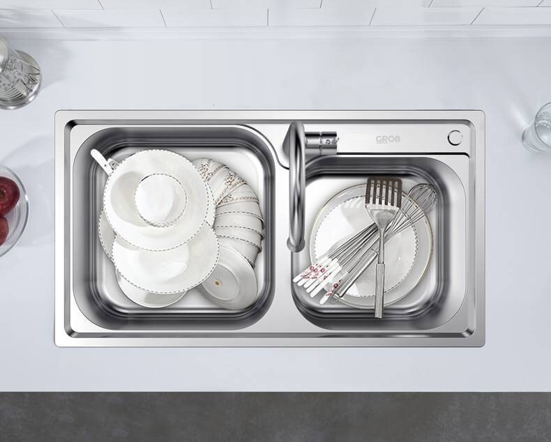 Chậu rửa Grob GS304-8245EPD hướng tới phân khúc trung cấp của thị trường và vẫn được sử dụng toàn bộ chất liệu cao cấp. Người dùng linh hoạt trong việc lựa chọn hố chậu theo nhu cầu sử dụng, giúp tiết kiệm nước với thiết kế 2 hố chậu lệch. Chậu rửa Grob GS304-8245EPD được thiết kế dành cho khoang tủ phổ biến rộng hơn 800mm.