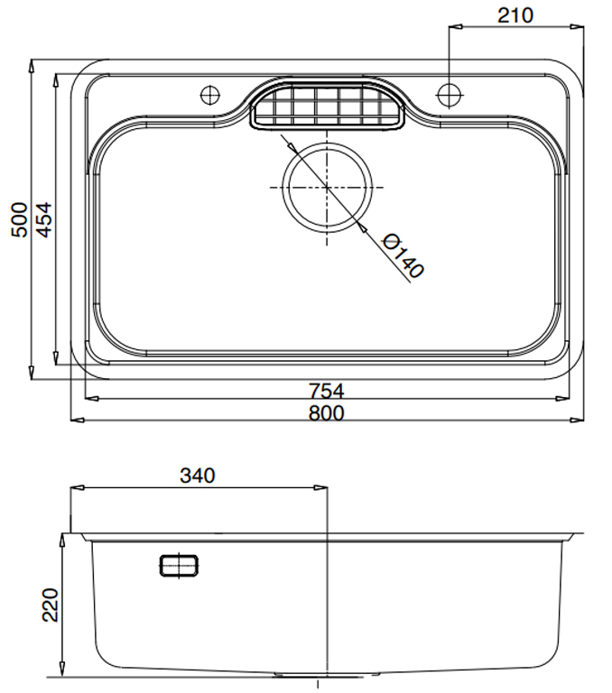 - Kích thước chậu: W800 x D500 x H220 (mm).