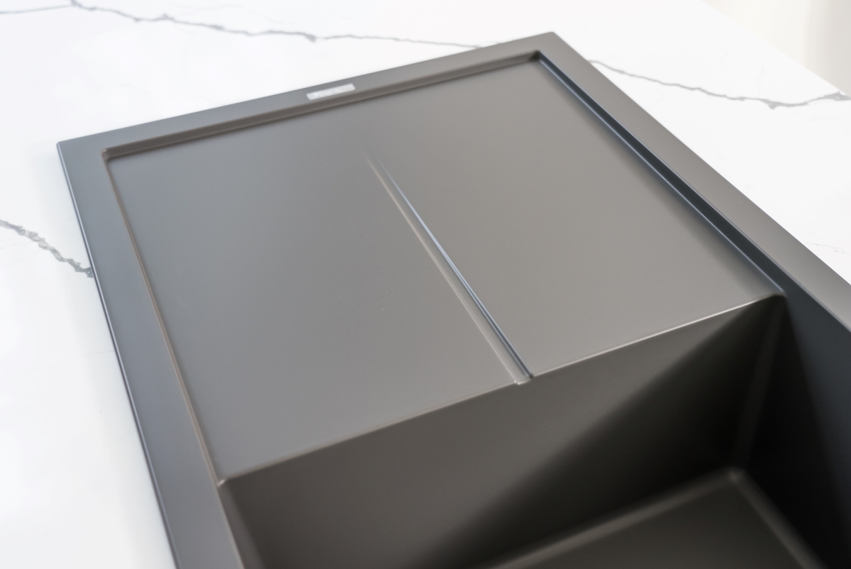 - Thiết kế chậu rửa Konox Livello Smart 1160 Grey vát cạnh tinh tế, dễ dàng vệ sinh.