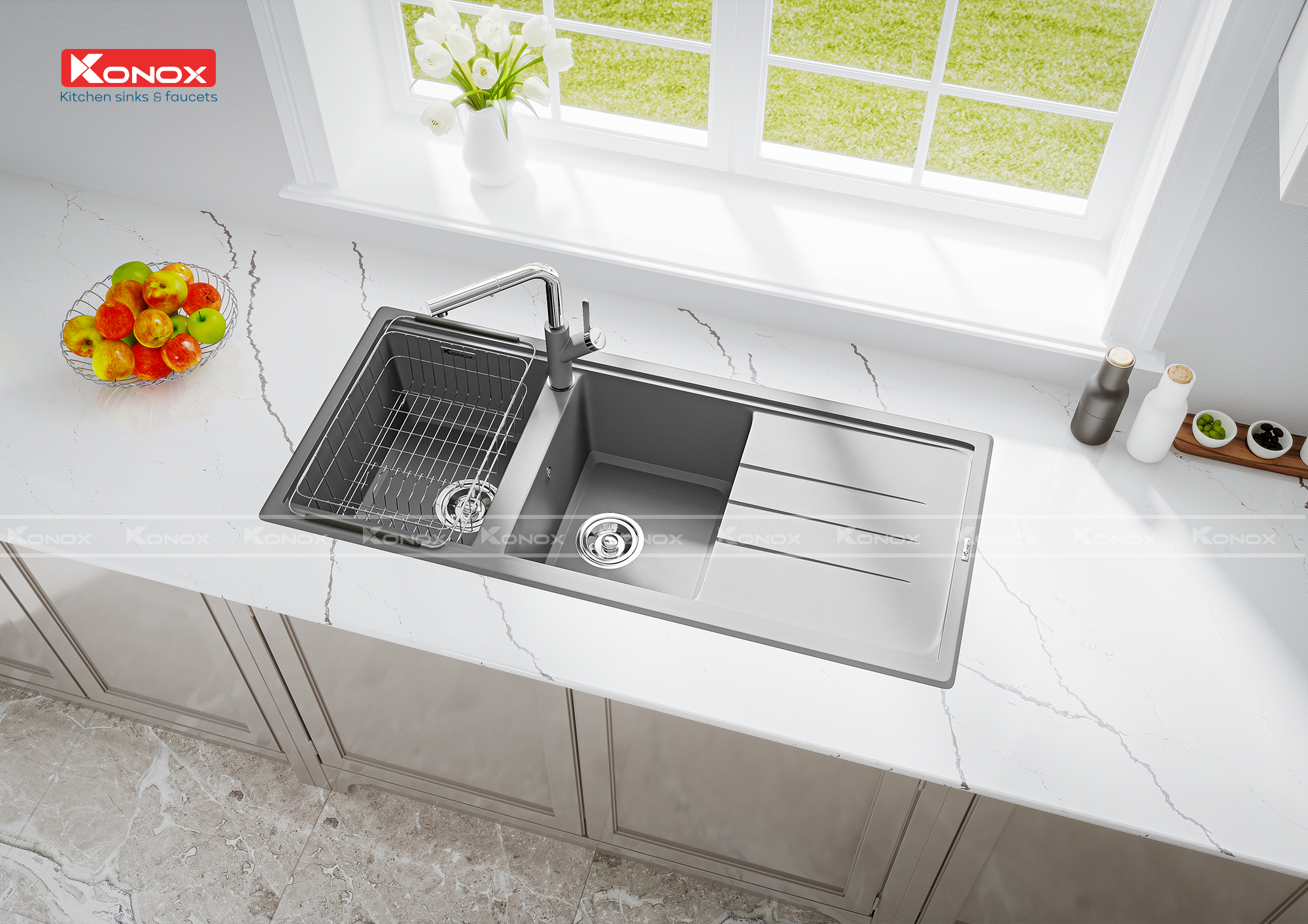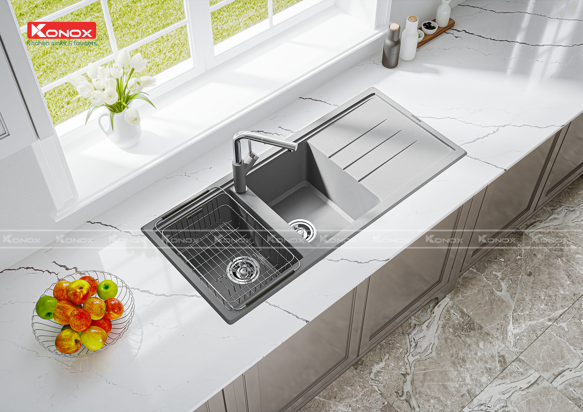 - Màu sắc chậu rửa Konox Phoenix 1160 Grey hiện đại phù hợp với mọi không gian bếp.