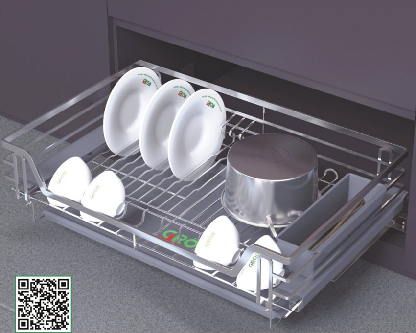 Thiết kế của giá bát đĩa đa năng Grob C1O304.083.75 này vô cùng linh hoạt. Nếu bạn có nhu cầu muốn gắn thêm cánh kéo vào giá bát đĩa đa năng này thì chỉ cần sử dụng thêm một bộ gá gắn cánh.