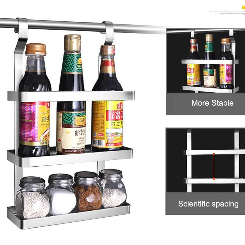 Cấu tạo 2 tầng giá giúp bạn sắp xếp ngăn nắp toàn bộ chai lọ gia vị một cách khoa học, gọn gàng.