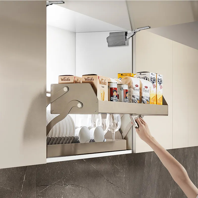 Giá nâng hạ đồ khô - bát đĩa | Cariny KD24CA-700 | 2 tầng | nhôm đúc nguyên khối | màu vàng Champagne Gold