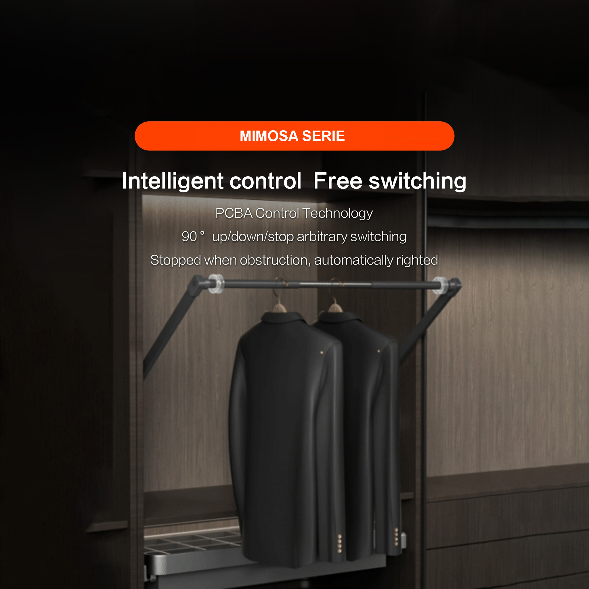 Giá nâng hạ điện cảm ứng treo quần áo GrandX XM.15E-Luxury là một giải pháp để trang bị cho tủ quần áo hoặc phòng thay đồ, giúp sắp xếp hiệu quả không gian phía trên của tủ quần áo, để cất quần áo trên móc treo và cung cấp khả năng tiếp cận tối ưu và thoải mái nhất.
