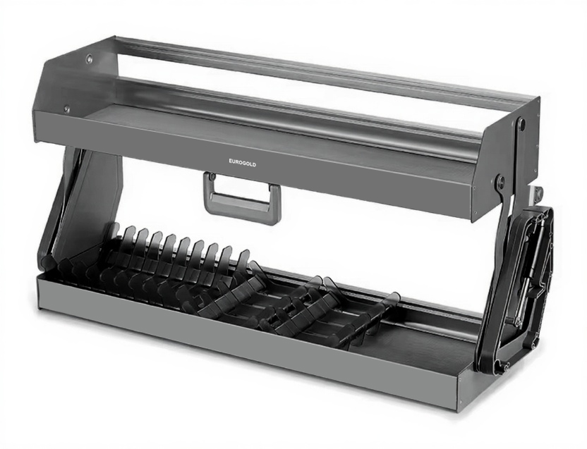 Giá nâng hạ đa năng là phụ kiện thông minh dành cho tủ bếp trên và ngày càng trở nên phổ biến tại các căn bếp gia đình hiện đại. Với mong muốn mang đến trải nghiệm tốt nhất cho người dùng, Eurogold nghiên cứu và cho ra mắt dòng sản phẩm giá nâng hạ đa năng hợp kim nhôm màu ghi đậm EUM9160G dành cho khoang tủ rộng 600mm.
