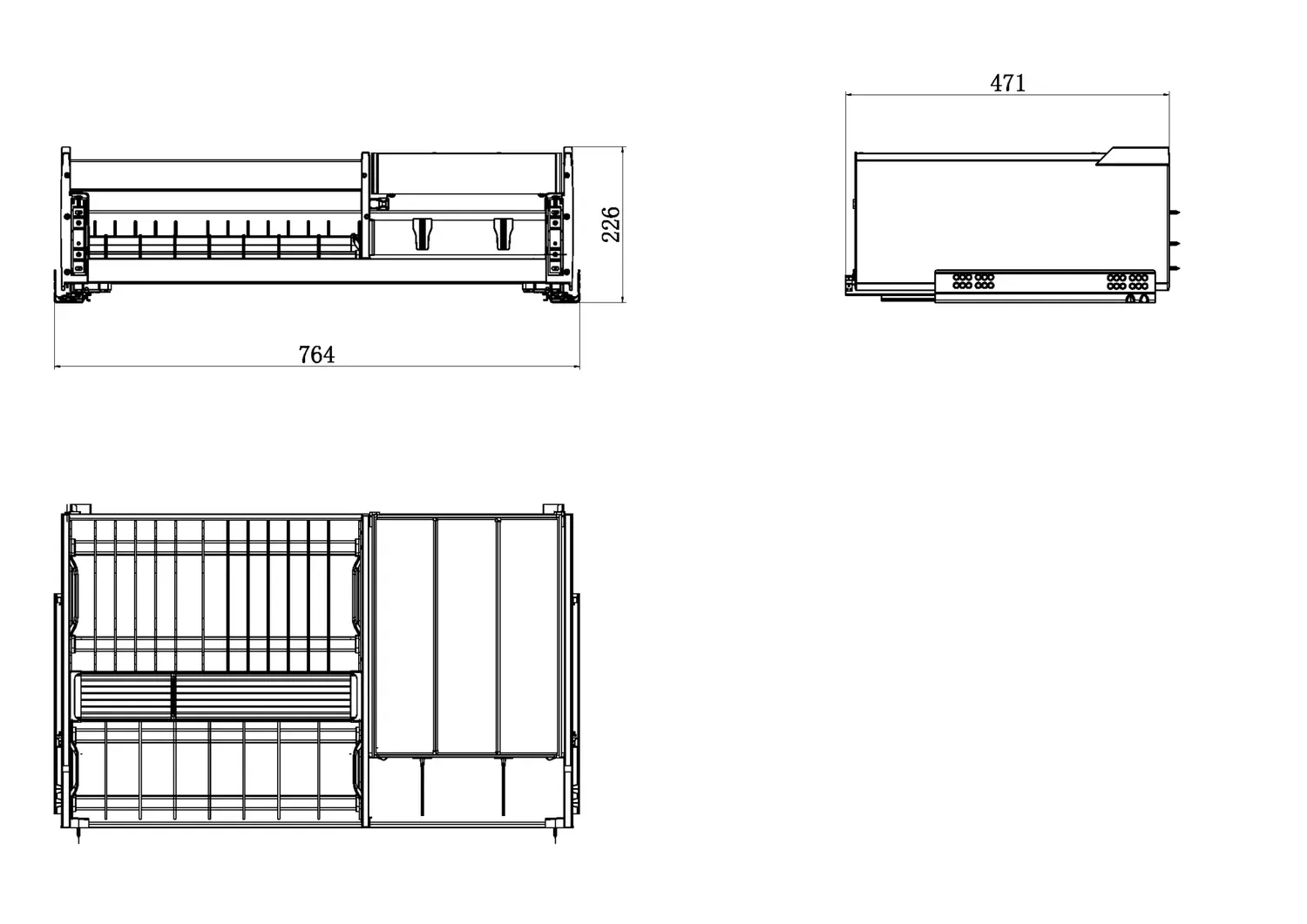 Cấu trúc độc đáo của giỏ kéo ra, có khay đựng dao kéo bên trong dạng trượt, cải thiện tỷ lệ sử dụng không gian. Giá đựng bát đĩa, hộp đựng dao và dĩa có thể di chuyển, tiện lợi và linh hoạt. Cấu trúc lắp đặt nhanh cho cửa tủ, dễ dàng và thuận tiện khi lắp đặt.