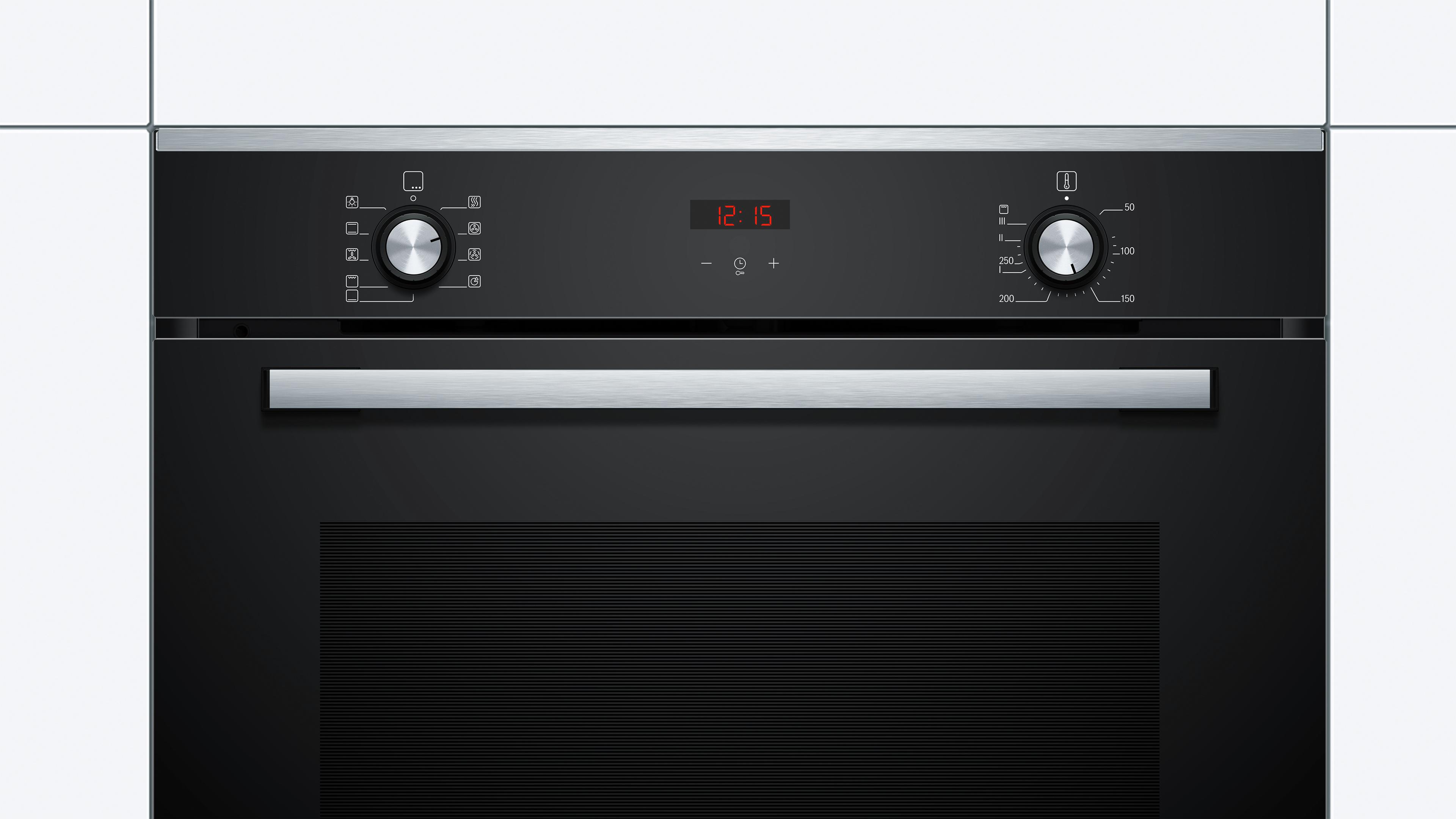 Nút nhấn mở cửa: Giúp dễ dàng vệ sinh mặt trước của lò nướng Bosch HBA2140S0 và mang lại vẻ ngoài sáng bóng cho lò.