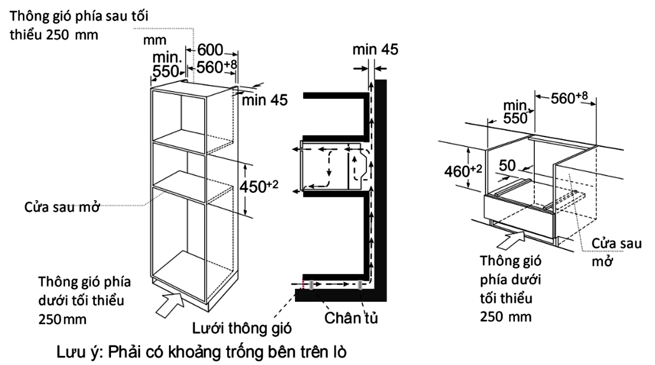 - Lưu ý: Chừa khe thoát giờ tối thiểu 45mm