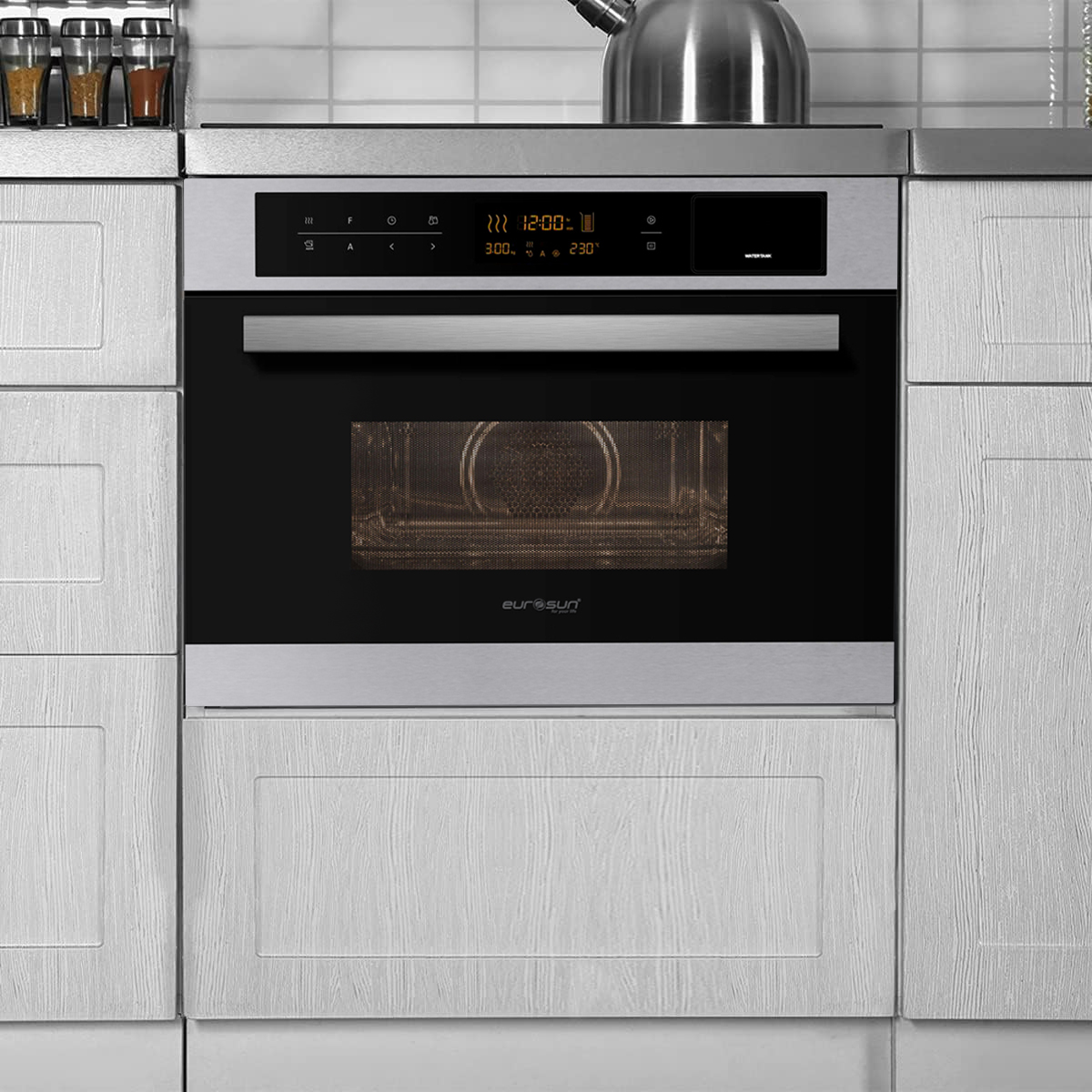 Lò nướng tích hợp lò hấp và vi sóng Eurosun OMS36EG thiết kế âm tủ, nhỏ gọn, thẩm mỹ, sang trọng và tiện lợi. Với thiết kế âm tủ có thể dễ dàng lắp đặt ở hộc tủ hay các ngăn ngay bên trong bếp mang lại sự tiện lợi và gọn gàng cho không gian bếp nhà bạn.