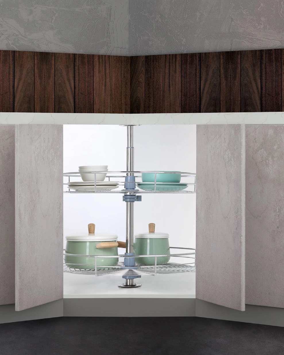 Mỗi tầng có thể xoay quanh trục một cách độc lập, tiện lợi khi lấy/cất đồ.