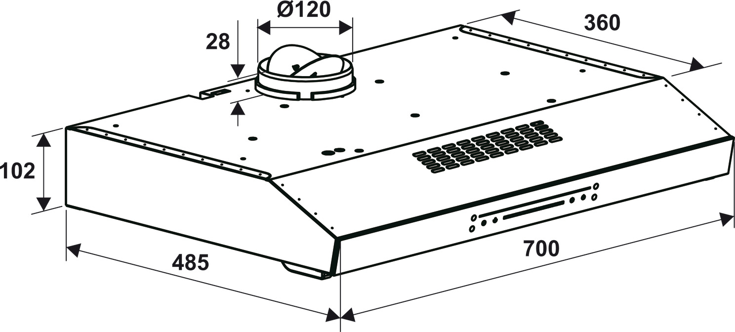 Kích thước của máy hút mùi Hafele HC-B705B | 533.87.797 là R700 x S485 x C102 mm. Sản phẩm này được sản xuất và nhập khẩu nguyên chiếc chính hãng từ Hafele.