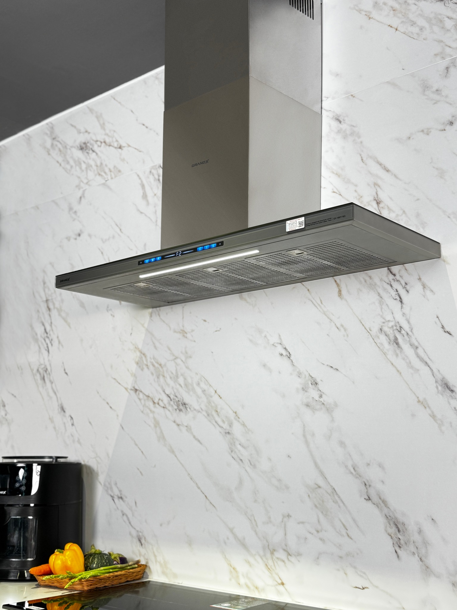 Máy hút mùi áp tường chữ T Inox kính xám 90cm GrandX GX H90T78G | GX H90T78SG không chỉ là một thiết bị thông thường mà còn là điểm nhấn tinh tế trong không gian bếp của bạn. Bảng điều khiển cảm ứng kỹ thuật số màu Sensor Touch Smart với 5 tốc độ hút linh hoạt cùng 1 mức công suất hút tăng cường Super Booster, việc điều chỉnh mức độ hút trở nên đơn giản và linh hoạt hơn bao giờ hết. Bạn có thể dễ dàng tinh chỉnh công suất hoạt động của máy để phù hợp với mọi nhu cầu nấu nướng và loại bỏ mọi mùi khó chịu, tạo ra một không gian bếp sạch sẽ và thoáng đãng mà không cần phải lo lắng.
