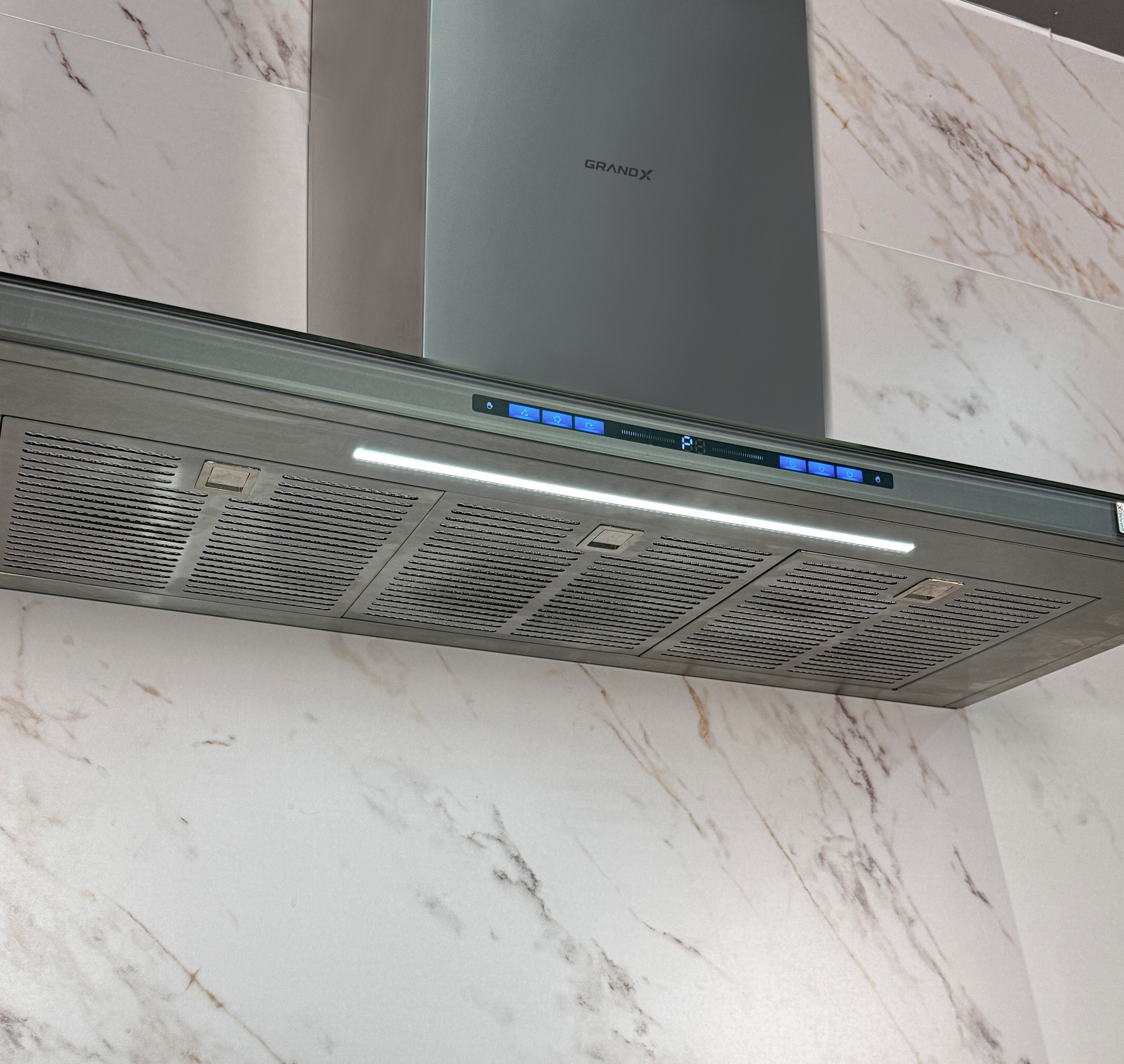 Ánh sáng LED trên máy hút mùi GrandX GX H90T78G | GX H90T78SG có tông màu tự nhiên, không gây chói mắt cho người sử dụng khi nấu nướng. Điều này tạo cảm giác thoải mái, dễ chịu và an toàn cho người dùng.