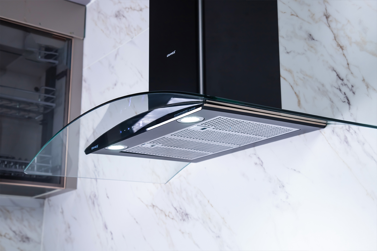 Máy hút mùi áp tường kính cong màu đen 70cm GrandX GX H70C62B | GX H70C62M sở hữu kiểu dáng Curved Arch Shaped European hiện đại, sang trọng, mang đến điểm nhấn ấn tượng cho không gian bếp của bạn. Kiểu dáng này không chỉ tạo nên sự sang trọng, tinh tế mà còn giúp tiết kiệm diện tích và dễ dàng vệ sinh.