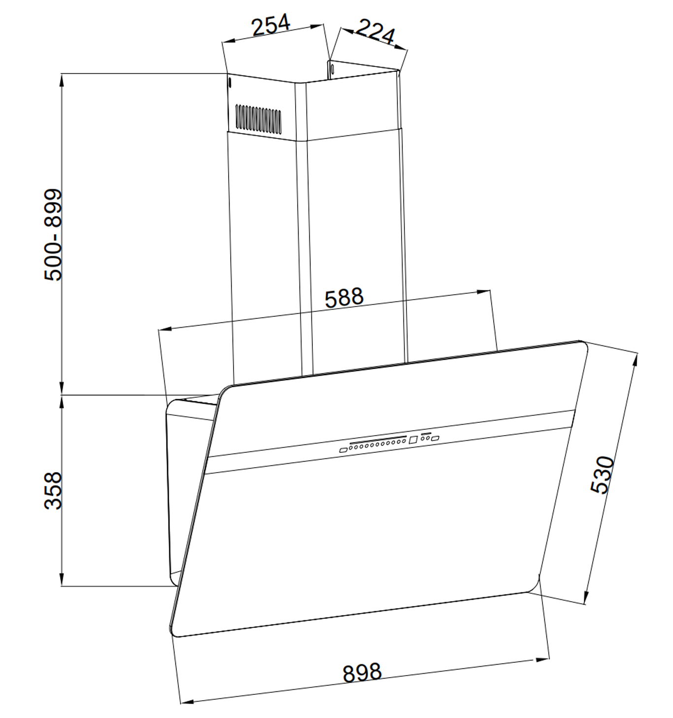 - Kích thước sản phẩm: R900 x S386 x C(530+(500-899) mm