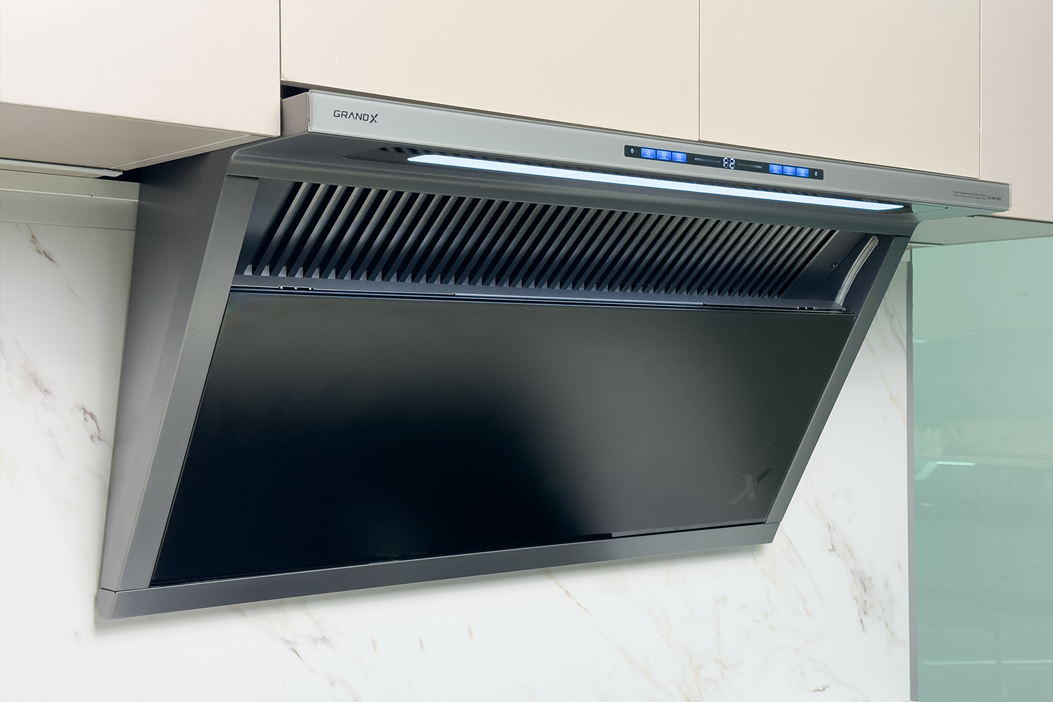 Máy hút mùi áp tường kính vát mở cửa tự động 90cm GrandX GX H90T88G | GX H90T88M tự hào tích hợp nhiều ưu điểm nổi trội về kích thước, kiểu dáng và công suất hút, tạo nên một máy hút mùi có hiệu quả tối ưu cho đa dạng không gian bếp.